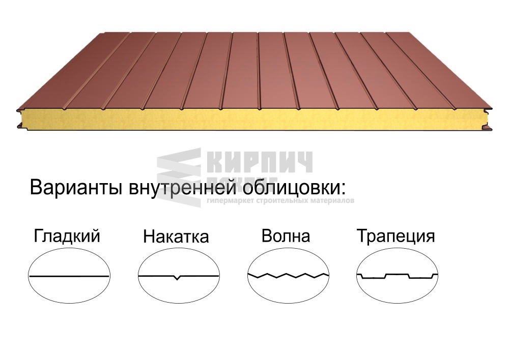 В интернет-магазине "Кирпич Вокруг" Вы можете купить Стеновая трёхслойная сэндвич-панель накатка 50мм 1190мм с видимым креплением минеральная вата Полиэстер Металл Профиль в Сочи, а наши специалисты готовы вам помочь с выбором по адресу: , или оказать консультацию по телефону: .