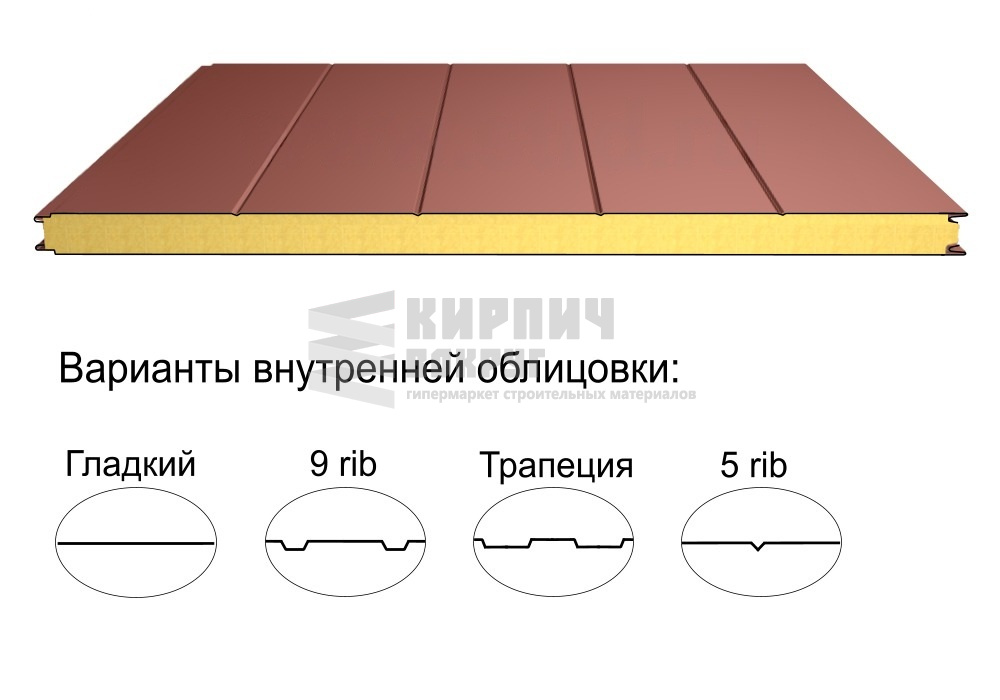 В интернет-магазине "Кирпич Вокруг" Вы можете купить Стеновая трёхслойная сэндвич-панель 5 rib 100мм 1000мм с видимым креплением минеральная вата Полиэстер Доборник в Сочи, а наши специалисты готовы вам помочь с выбором по адресу: , или оказать консультацию по телефону: .